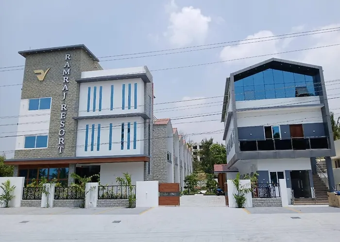 Одна з найближчих пам'яток — Храм Кумарі-Амман — знаходиться на відстані 5 хвилин пішої прогулянки від курортного комплексу. Trisea Sangamam, а також Пляж Каньякумарі знаходяться за біля готелю. Автобусна станція Kanniyakumari Stand розміщена всього за 0.8 км від Ramraj Resort, і VK Botanical Garden — лише за 1.7 км. Міжнародний Тируванантапурам розташований за 95 км їзди від цього помешкання.